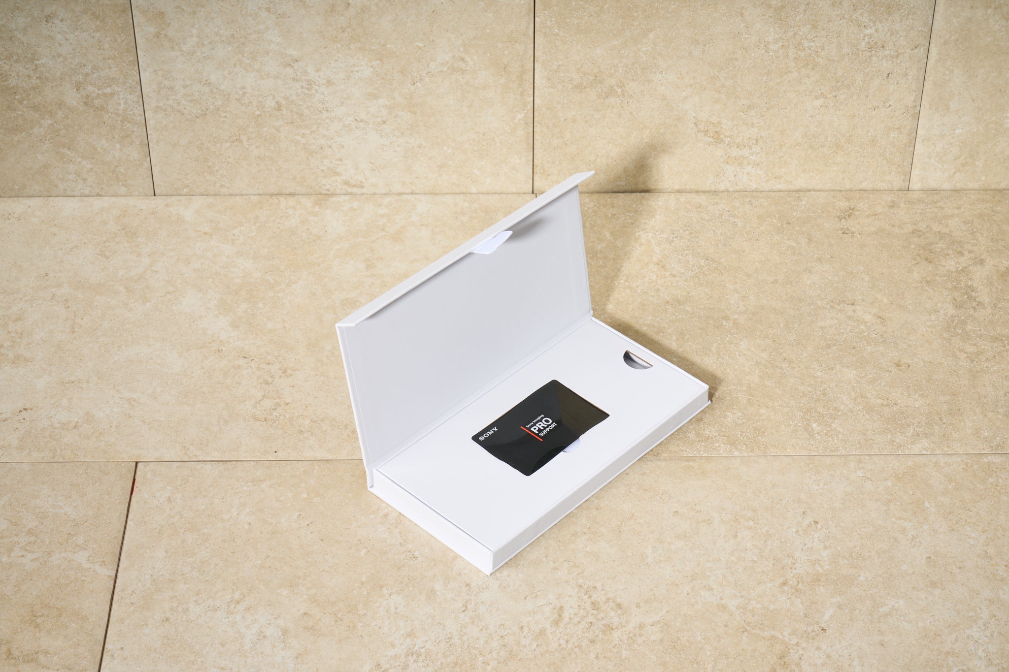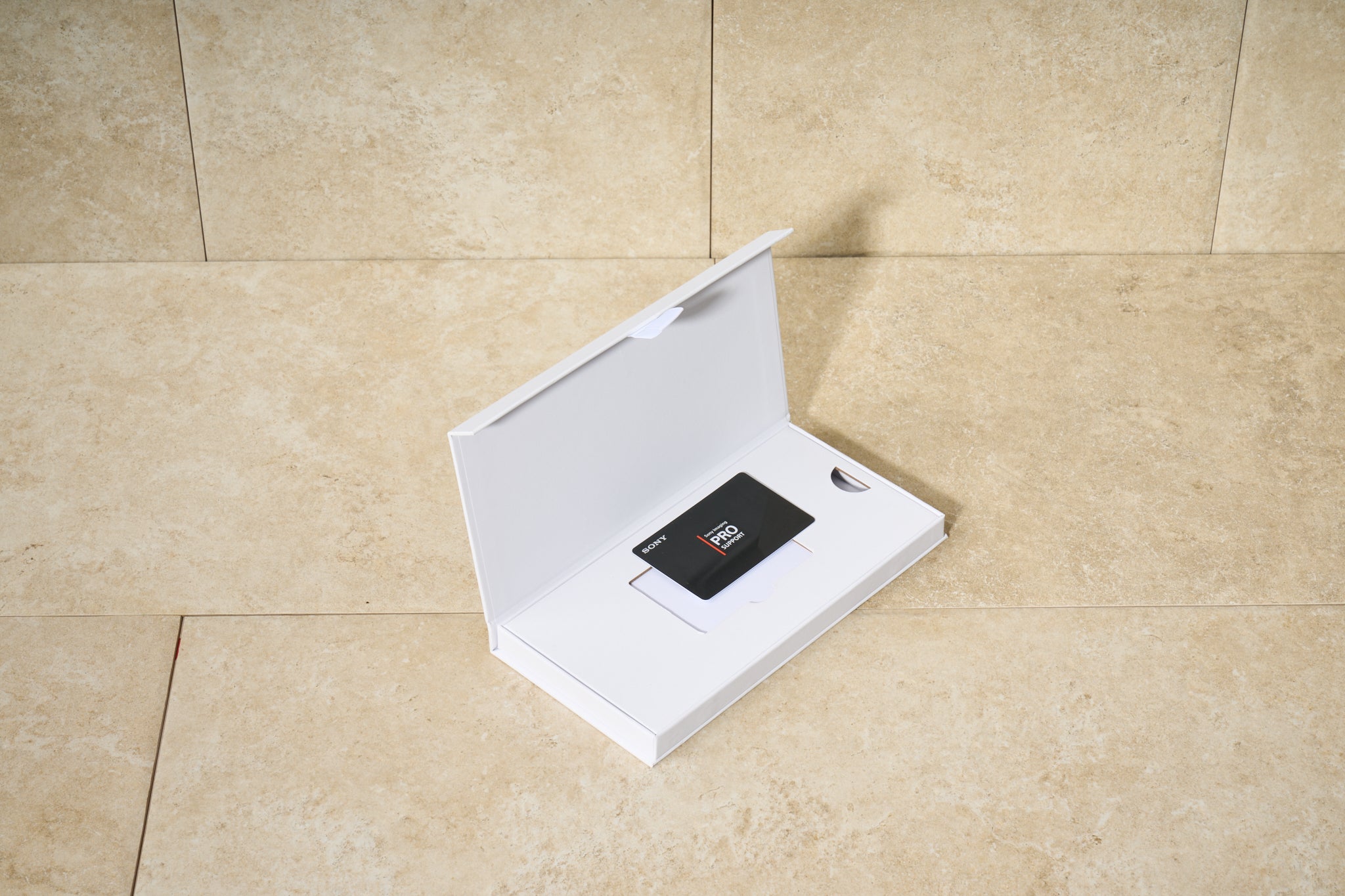 Premium Luxury DL Sized Box with tray to hold a Gift Card. Sleek gift card box, 15mm of depth that will also hold a DL gift certificate and Gift Card. The tray can be removed to hold more brochures and product. These sleek Luxury boxes are supplied ready to go no assembly required. Our luxury silk touch covering material in black or white presents your quality products. Supplied in carton lots of 20 units, we do not break cartons. All boxes feature our small trademarked logo under the base.